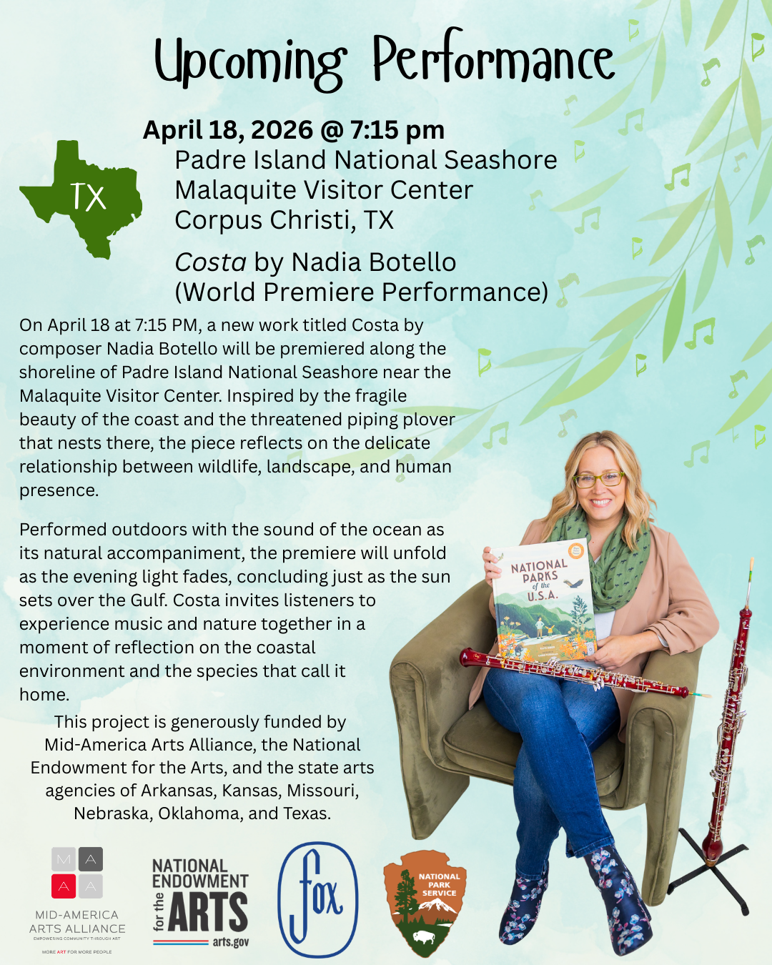 This evolving commissioning project invites women composers to create new works for oboe and English horn, each inspired by a National Park Service site in their home state. From scenic vistas to historic trails, these pieces celebrate the diverse voices and places that shape America's past and present.